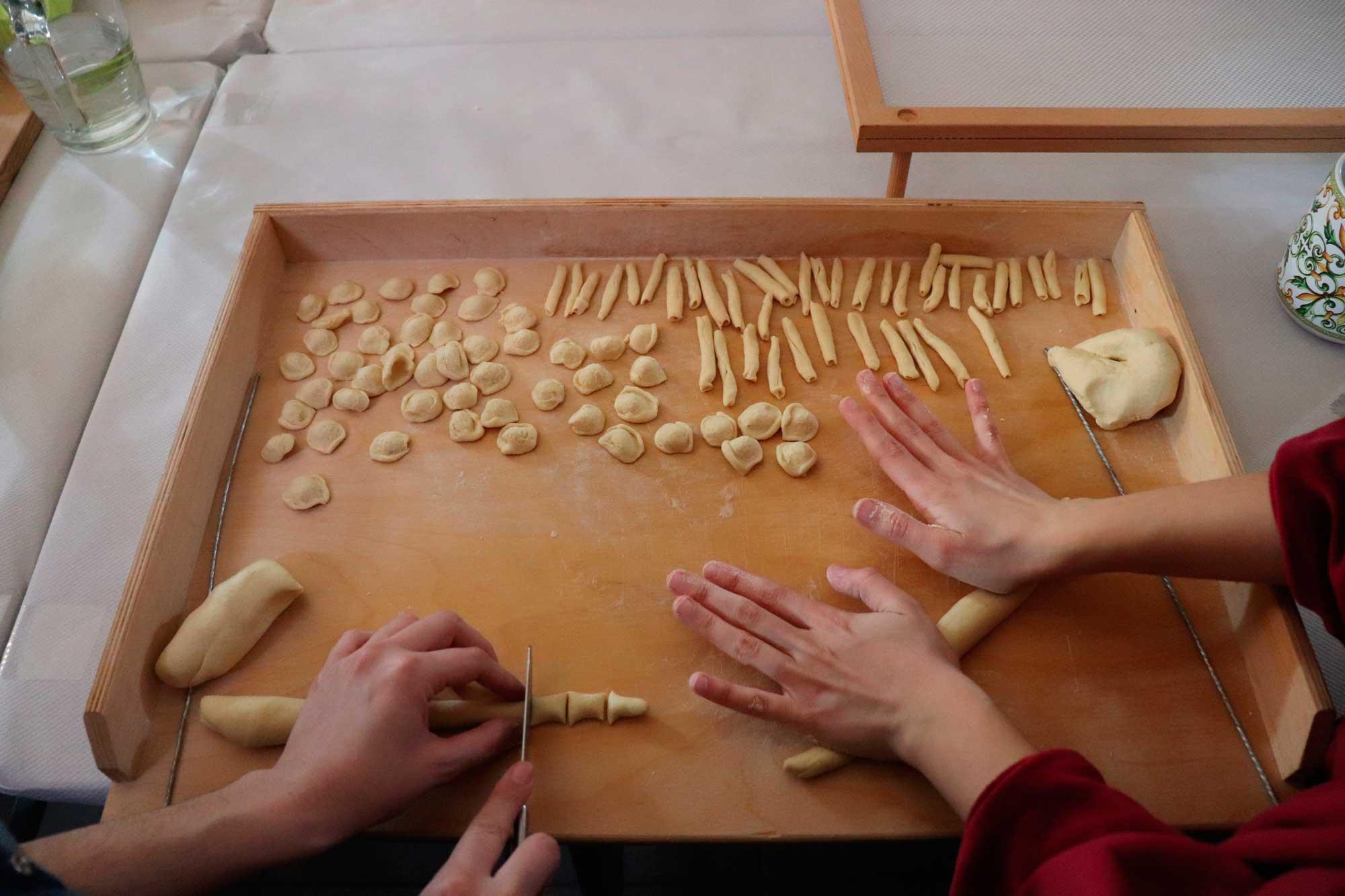Successivamente verrà organizzato un aperitivo rinforzato in cui degusteremo la stessa pasta realizzata durante il laboratorio e le altre specialità della masseria, tra cui il vino Li Cunti, tra gli ultimi prodotti dall’azienda.